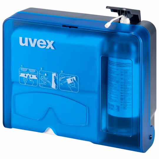 Uvex briļļu tīrīšanas stacija, piestiprināma pie sienas.