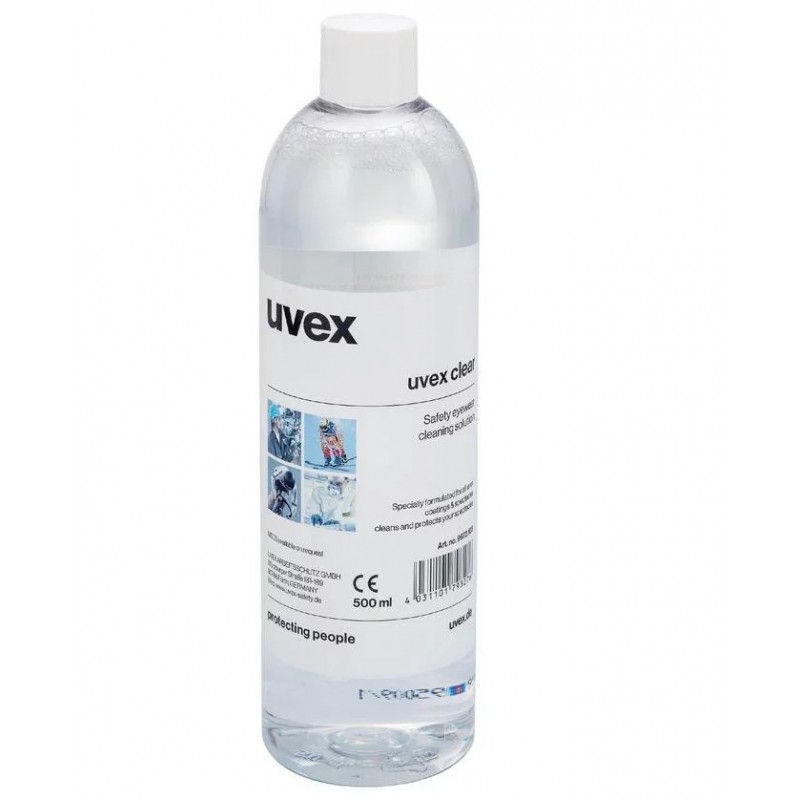 Tīrīšanas šķidrums ir piemērots visa veida briļļu lēcām. Tilpums 500ml. Uvex briļļu tīrīšanas stacijai.