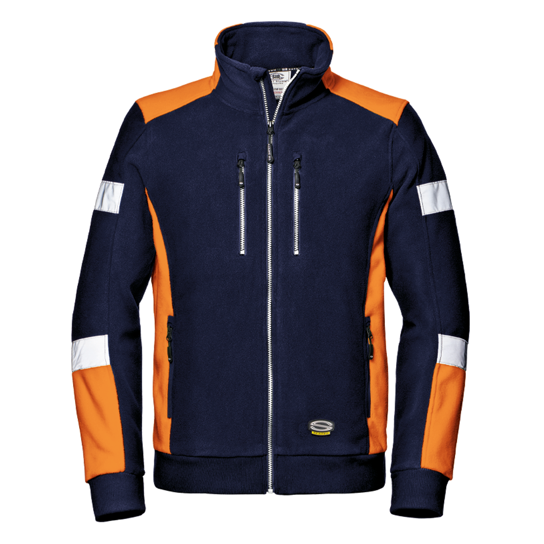 Rāvējslēdzēja aizdare, elastīgas adītas aproces un jostasvieta, ar rāvējslēdzēju aiztaisāmas sānu kabatas un divas krūšu kabatas ar rāvējslēdzēju. Atstarojošas lentes uz piedurknēm, pleciem un muguras.