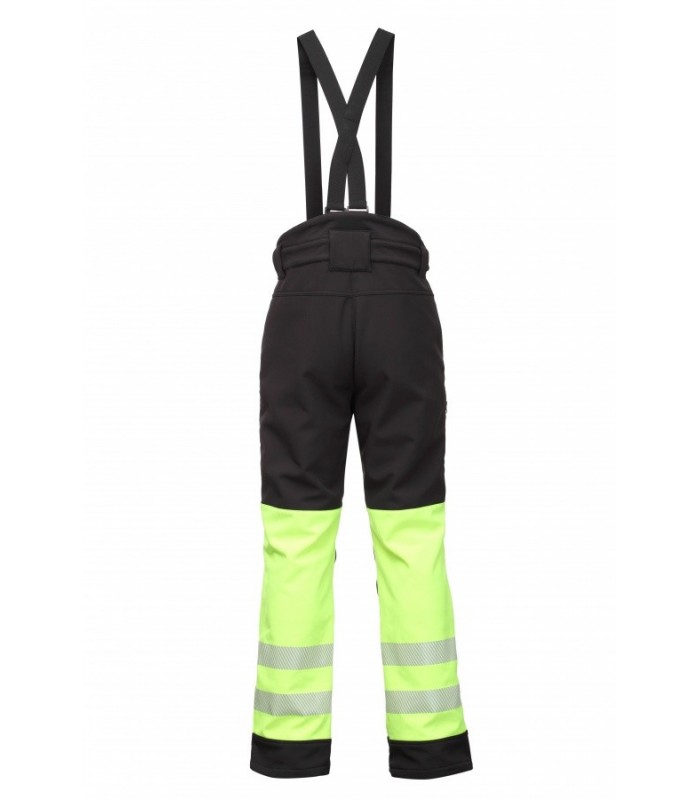 Melnas, labi redzamas, izolētas darba bikses ar lencēm ATLANTA. Šīs bikses ir ūdensnecaurlaidīgas un vēja necaurlaidīgas. Pateicoties rāvējslēdzēja ventilācijas sietam sānos, šīm darba biksēm ir lieliska gaisa cirkulācija un tās nodrošinās komfortu. Pateicoties biezajam 160g/m² 100% poliestera sinteponam, tās ir īpaši siltas skarbos laika apstākļos. Šo bikšu jostasvieta ir pagarināta. Četru punktu lencītes ir noņemamas. Bikšu jostasvieta ir regulējama, tāpēc tās lieliski pielāgojas ķermeņa formai. Priekšpusē ir divas kabatas, kas aiztaisāmas ar rāvējslēdzējiem. Kāju apakšā atrodas sānu rāvējslēdzēji ērtākai uzvilkšanai. Šīm darba biksēm ir segmentētas atstarojošas svītras un labi redzams dzeltens audums kāju zonā.