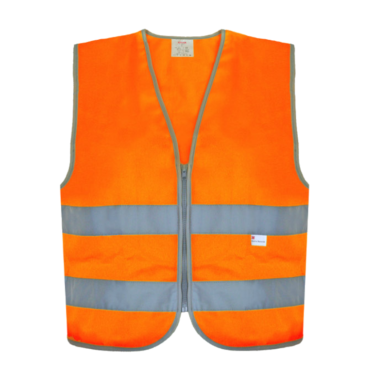 Fluoriscējoša veste ar 2 horizontālām atstarojošām lentām.