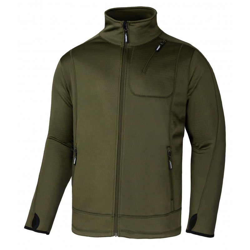 Aizmugurējā daļa no vēja necaurlaidīga elastīga Softshell auduma.