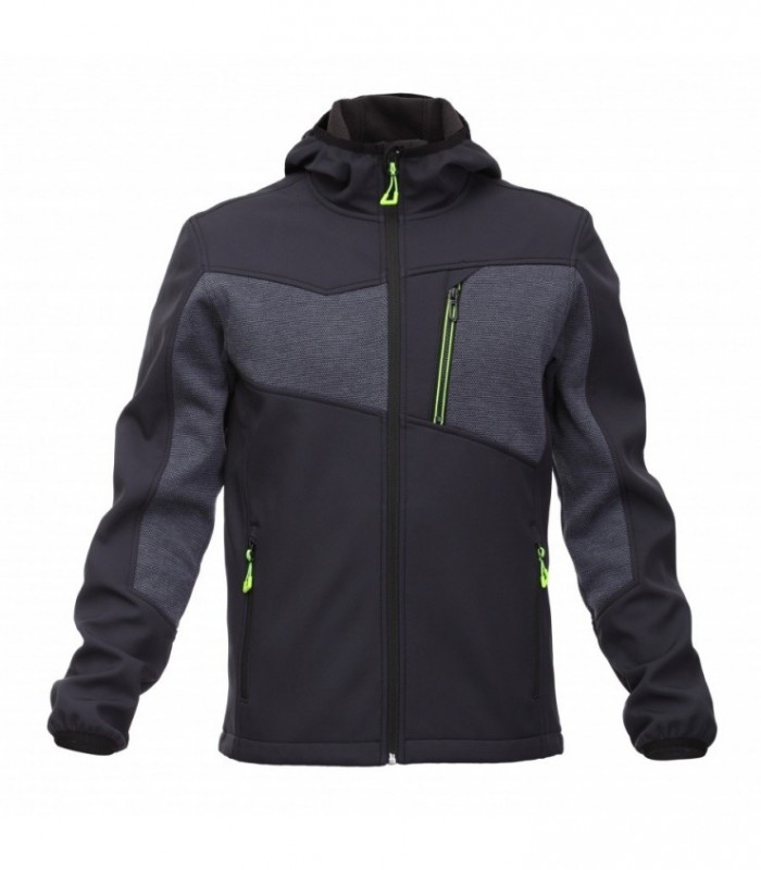Galvenā jakas daļa sastāv no ļoti elastīga, mīksta un silta Softshell auduma.
